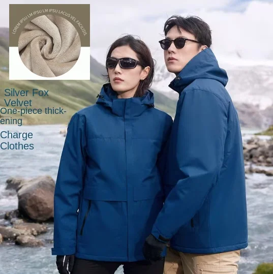 High-end Business Integrated Silver Velvet Padded Charge Clothes Custom Advertising Fleece Jacket Windproof Waterproof Zipper